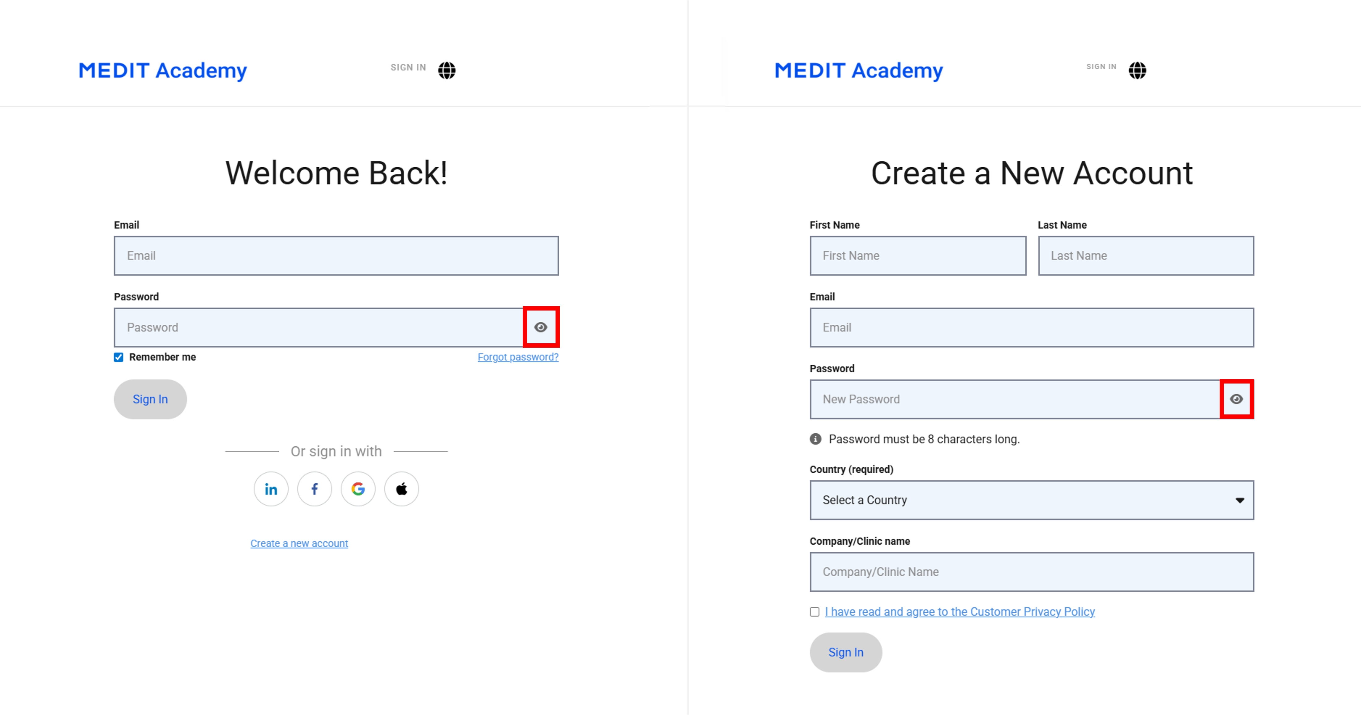 Show or hide your password while signing in or signing up to ensure accuracy.